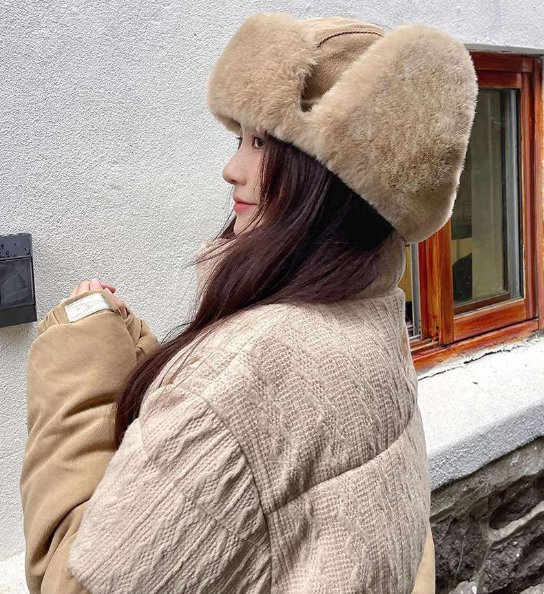 柔らかな毛皮のような素材で耳まで包み込み、暖かさを保ちます。